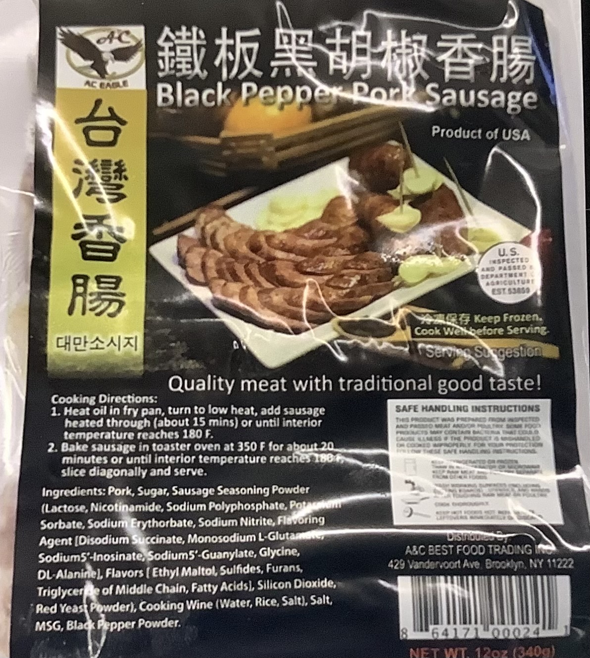 AC EAGLE-台湾香肠(黑胡椒味)340g*30袋 数量